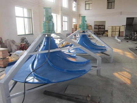 結(jié)構(gòu):多曲面攪拌機由傳動部件、葉輪、底座、吊裝系統(tǒng)及電控組成。